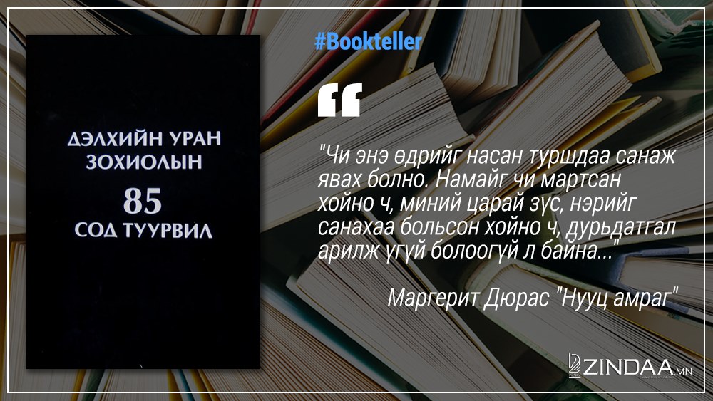 - Өөрийн намтраар зохиол бичих чиглэлийг өрнөдийн утга зохиолд тод оруулж ирсэн зохиолч бол Маргерит Дюрас юм.