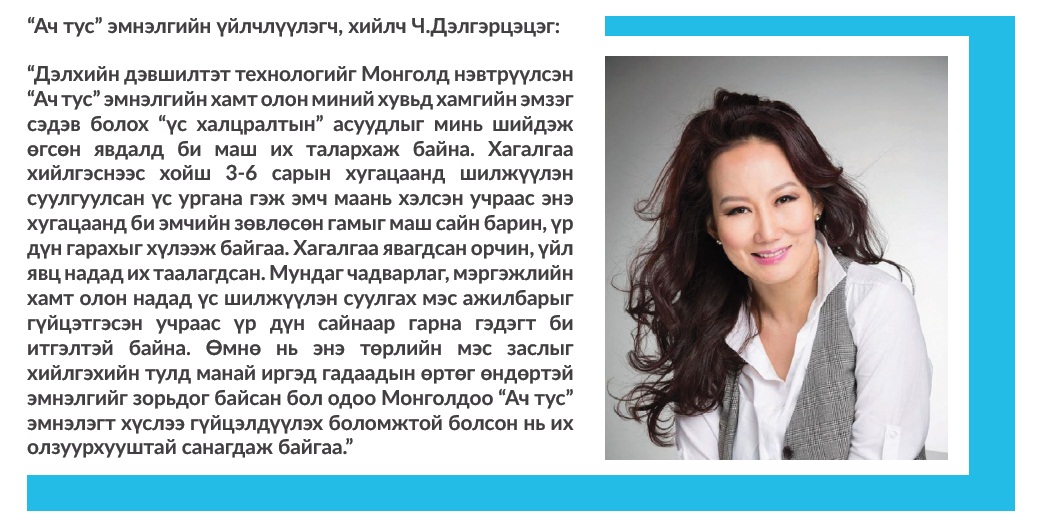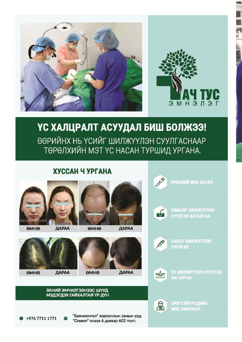 -Анагаах ухаан, гоо сайхны салбарт гарч буй үс шилжүүлэн суулгах дэвшилтэт технологийн талаар манай уншигчдад сонирхуулсанд баярлалаа. Амжилт хүсье.