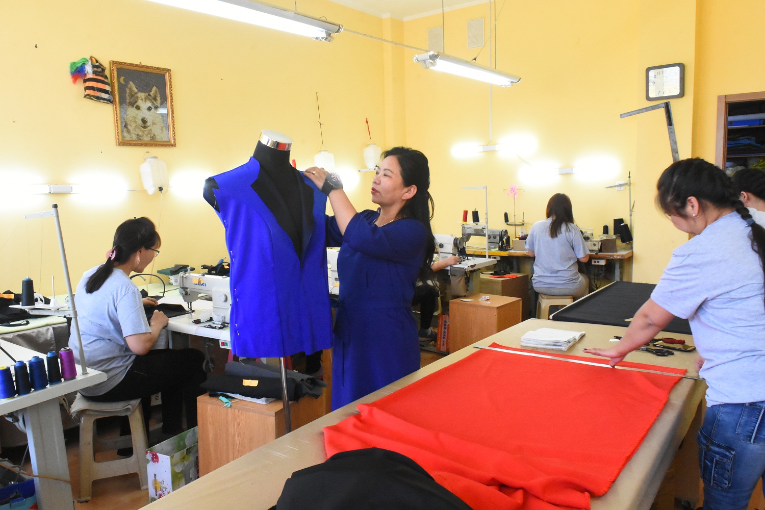-Хөдөө орон нутагт сургууль, цэцэрлэг, төрийн албан хаагчдын оффис хувцасны захиалга авч их явна аа. Хэнтий, Булган, Архангай гээд ойрын аймгуудад очиж газар дээр нь хэмжээ авч ажилладаг. Нэг явахдаа хэмжээ авч, дахин очиж хүндээ таарсан эсэхийг үзсэний дараа оёдог. Нэг байгууллагын захиалга гүйцэтгэхдээ хоёр удаа явдаг гэсэн үг. Холын аймагтай бол интернэтээр холбогдож захиалгаа авна. Онлайнаар захиалга авахад хэмжээгээ цаад газар маш сайн авч ирүүлэх хэрэгтэй болдог. Захиалга гүйцэтгэхдээ зүгээр размерлаад оёод явуулах биш, хүн нэг бүрийн биеийн онцлог өөр тул аль болох тухайн хүндээ яг тааруулж хийх сонирхолтой. Буруу татуу хийчихвэл дараа дахиад яаж хувцас хийнэ гэж захиалга авах вэ дээ.