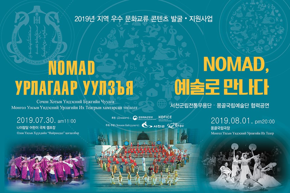 Монголын Үндэсний Урлагийн их театр, БНСУ-ын Өмнөд Чүнчон аймгийн Сочон хотын Үндэсний Бүжгийн чуулгатай хамтарсан “Nomad урлагаар уулзъя” тоглолт маргааш буюу наймдугаар сарын 1-нд ҮУИТ-ын их танхимд зохион байгуулагдах гэж байна. Энэхүү тоглолтод Сочон хотын Үндэсний Бүжгийн чуулгын 26 уран бүтээлч оролцох бөгөөд тоглолт үндсэн хоёр хэсгээс бүрдэх юм. Монгол-Солонгосын үндэсний урлагийг дэлхий дахинд түгээн дэлгэрүүлж сурталчлах, хоёр орны соёлын харилцаа холбоог өргөжүүлэх чиглэлээр зохион байгуулагдаж байгаа энэхүү тоглолтыг энэ сарын 30-нд Олон Улсын Хүүхдийн “Найрамдал” цогцолборт толилуулсан бөгөөд үзэгч хүүхдүүд маш өндөр сэтгэгдэлтэй байсан ажээ.