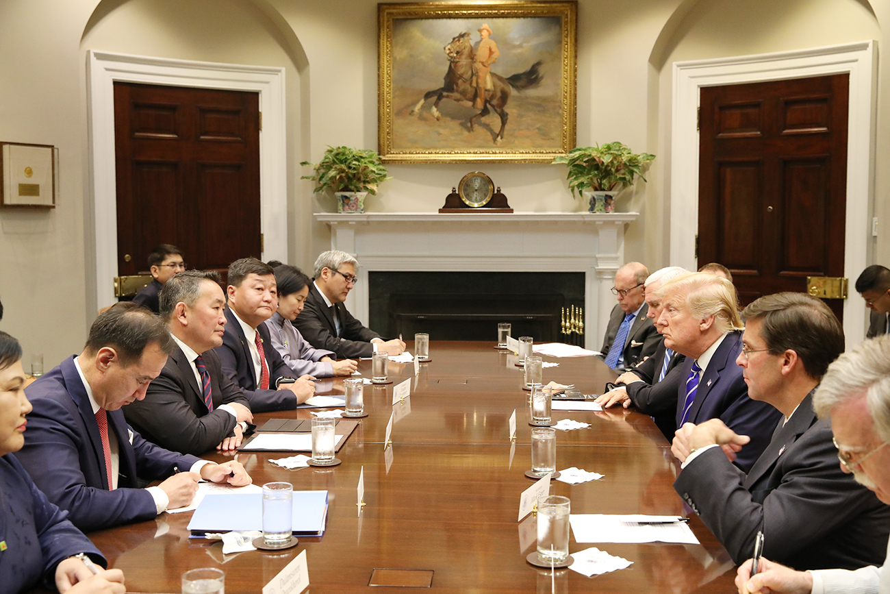 Монгол Улсын Ерөнхийлөгч Х.Баттулга, АНУ-ын Ерөнхийлөгч Доналд Трамп нар долоодугаар сарын 31-ний өдөр Цагаан ордонд албан ёсны хэлэлцээ хийлээ.
