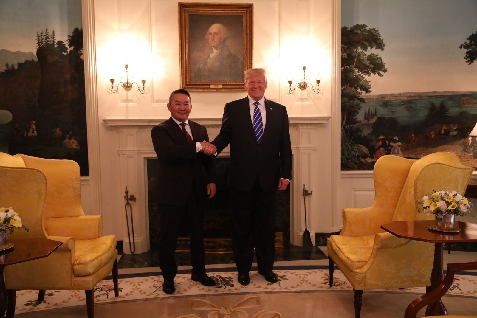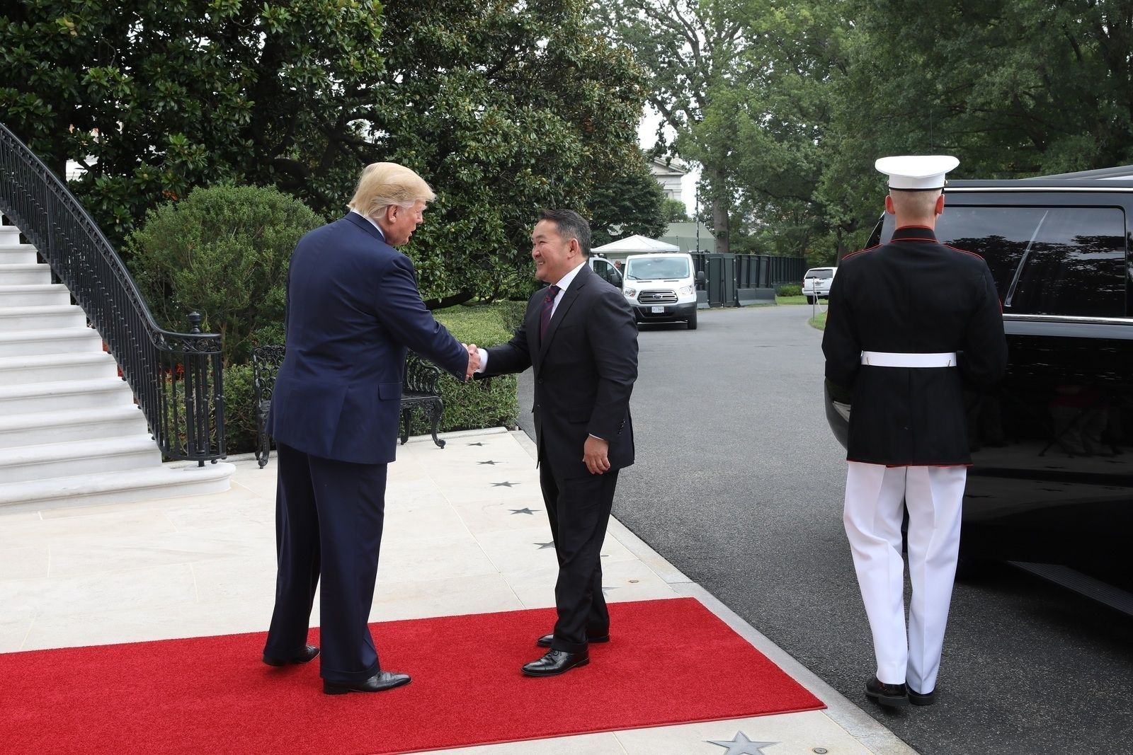 Монгол Улсын Ерөнхийлөгч Х.Баттулга АНУ-д албан ёсны айлчлал хийж байна. Тэрбээр айлчлалын хүрээнд өчигдөр /2019.07.31/ тус улсын Ерөнхийлөгч Д.Трамптай ганцаарчлан уулзалт хийлээ. Таван минутаар төлөвлөсөн уг уулзалт 40 минут үргэлжилсэн байна. Хоёр улсын Ерөнхийлөгч уулзалтынхаа хүрээнд тунхаг бичиг гаргалаа.