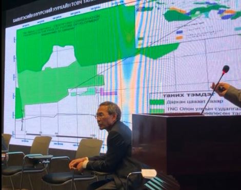 Олборлолтын үйл ажиллагаа, ашигт малтмалын тусгай зөвшөөрөл зэргийнхээ талаар тайлбарлах явцдаа тэрбээр байгаль орчны үнэлгээний олон улсын TNC компанийн Тост, Тосон бумбын нурууны экосистемийн судалгааны дүгнэлтийг эшлэхдээ дараах слайдыг үзүүлсэн.