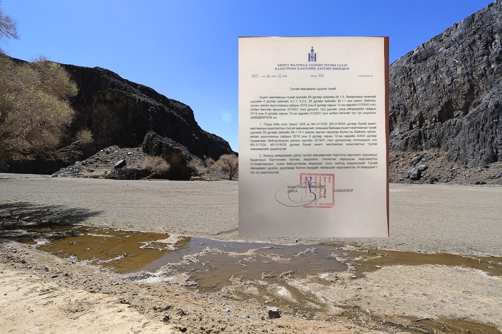 Монгол Улсын Ерөнхий сайд У.Хүрэлсүхийн өгсөн үүрэг чиглэлийн дагуу Байгаль орчин, аялал жуулчлалын яамнаас “Сауд гоби коэл транс” компанийн ашиглалтын тусгай зөвшөөрлийг цуцлахаар боллоо. Тус компани “17038219036 тоот ашиглалтын тусгай зөвшөөрөл эзэмшдэг байсан юм.