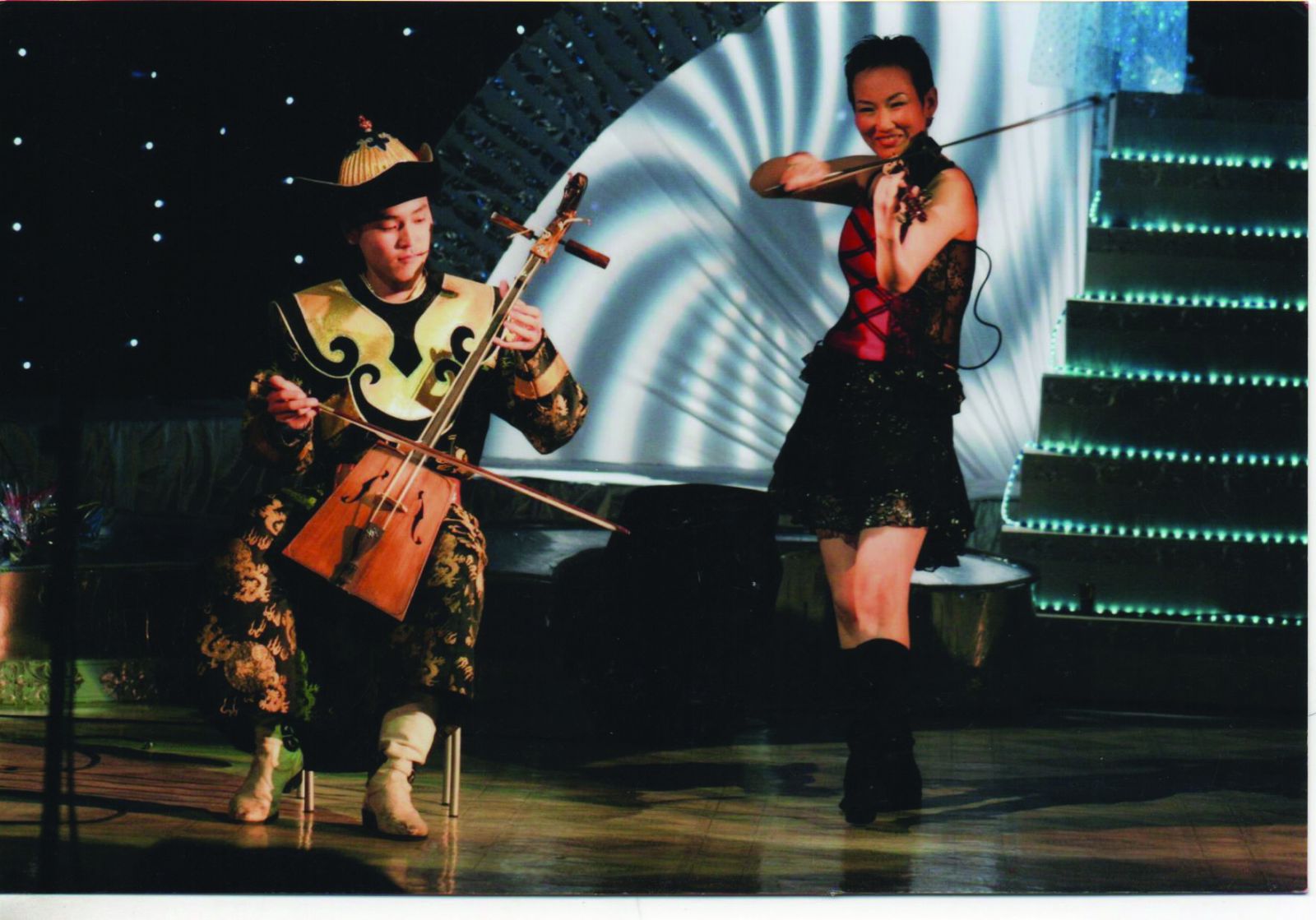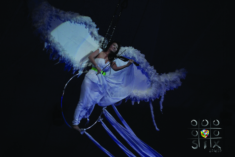 Цагаан даль жигүүрт хийлч Дээгий агаарт нисэн хийл тоглож буй том зургийг ажиглан зогслоо. ...2011 он. “Гайхмаараа” тоглолтоо Циркт хийхдээ үзэгчид рүүгээ агаарт нисэн хийл тоглосоор очсон “Сонгодог урлагийн хатан хаан”... Үзэгчид нь бараг бүгд уйлсан гэдэг...