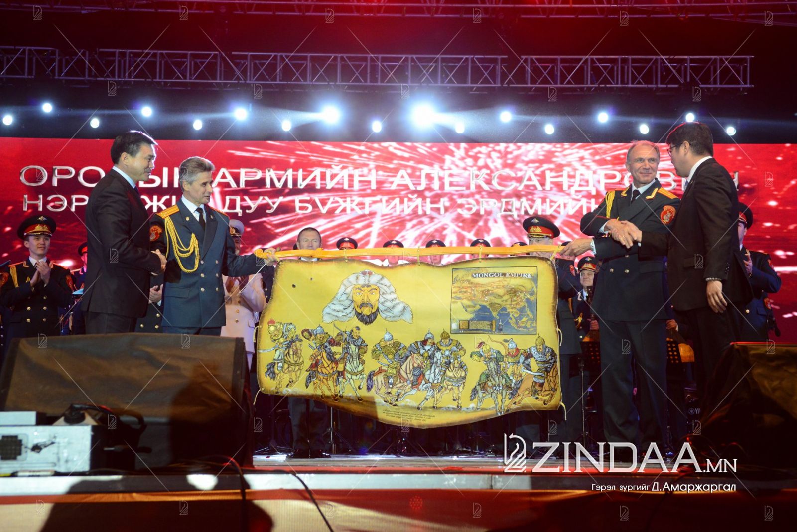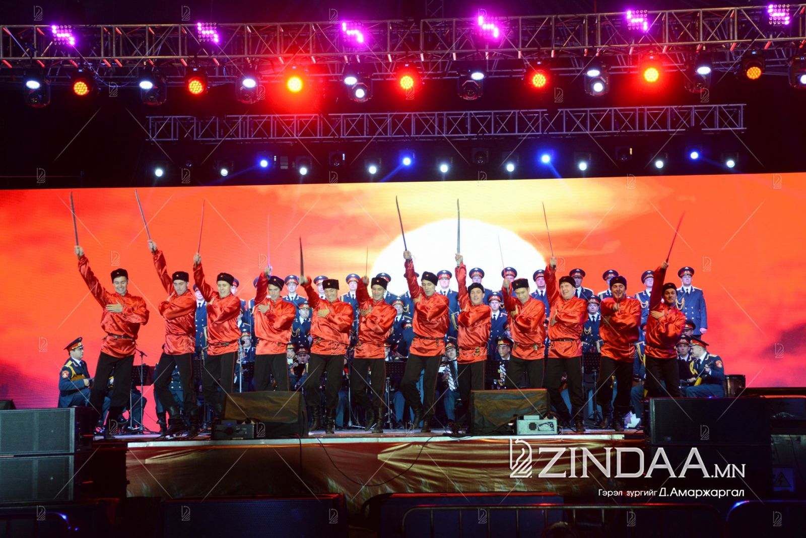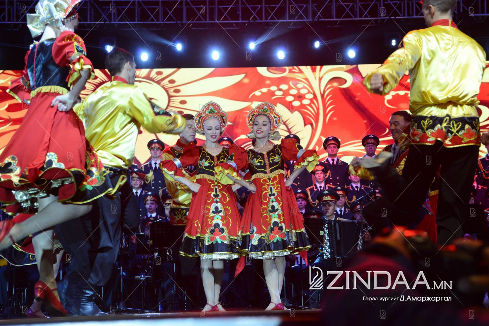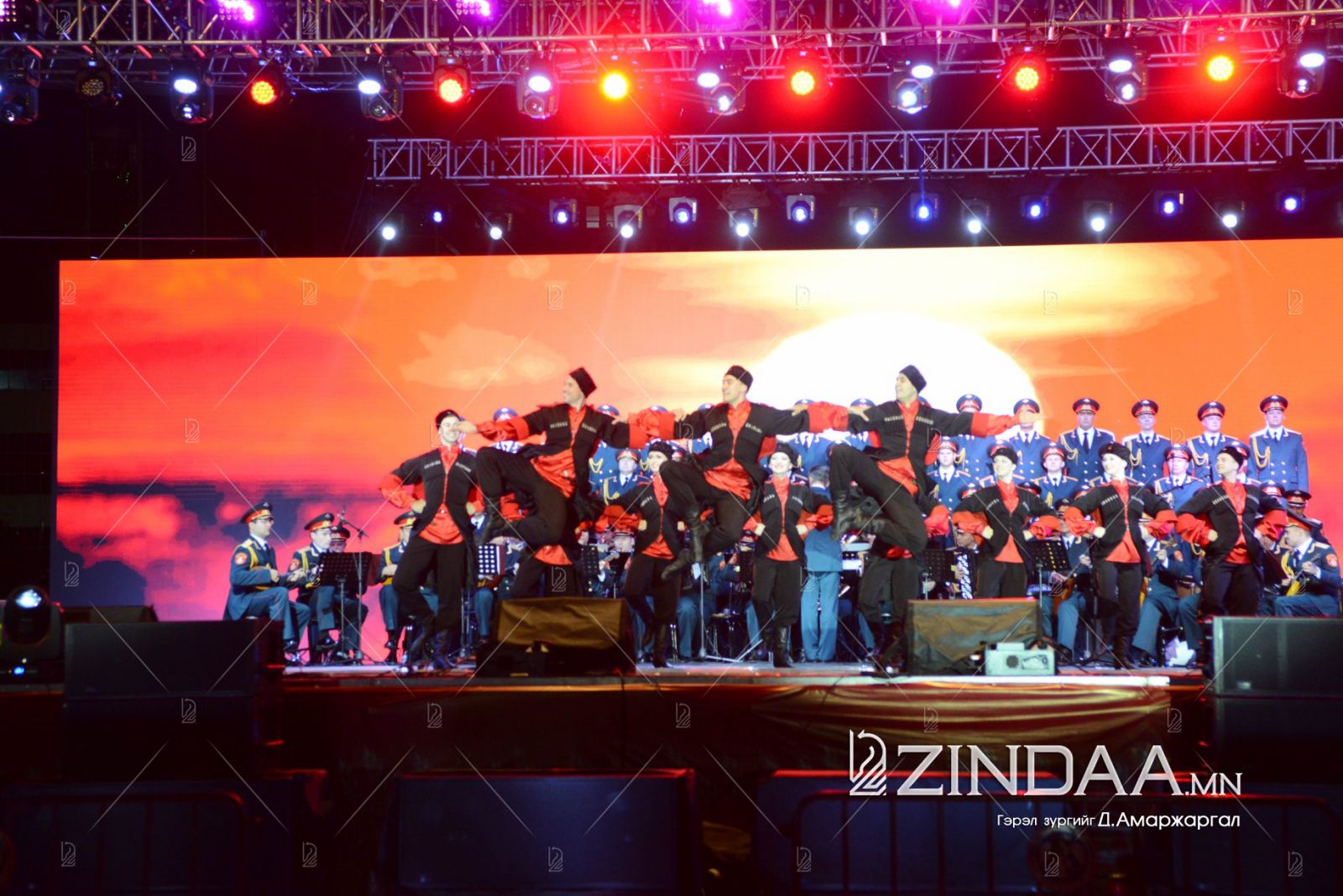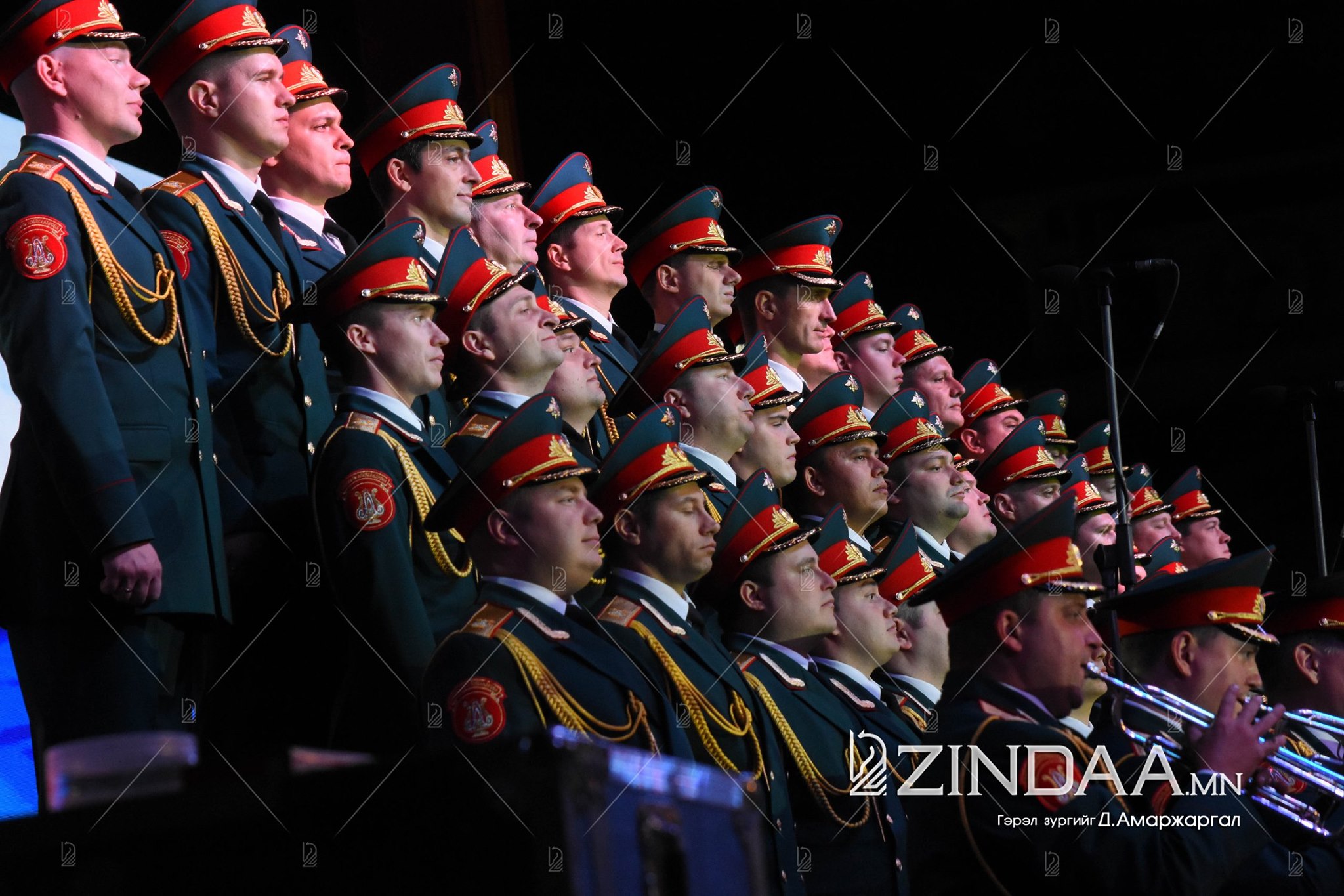 А.В.Александровын нэрэмжит ОХУ-ын Зэвсэгт хүчний Эрдмийн чуулгын найрал хөгжимчид, найрал дуучид Монгол Улс, ОХУ-ын төрийн дууллыг дуулж тоглолтыг эхлүүлэв.
