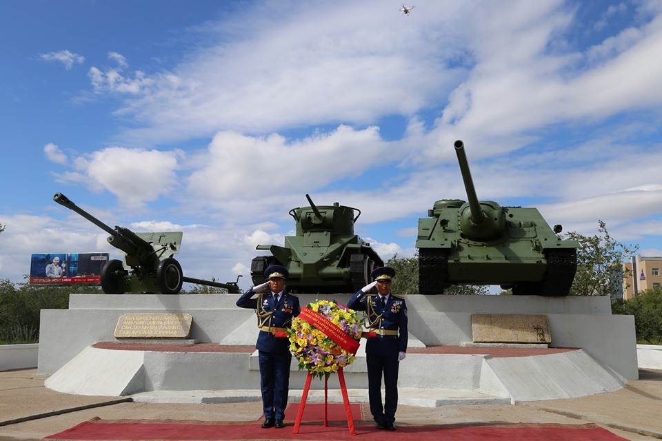 Монгол түмний төлөө амиа өргөсөн мохошгүй зоригтнууд бол Зөвлөлтийн, Оросын ард түмний зоригт хөвгүүд юм. Энэ олон онцлог талтай дайнд амь эрсэдсэн Монгол-Зөвлөлтийн баатруудын 27 хүн тутмын 26 нь Зөвлөлтийн цэрэг Оросын цэрэг байжээ. БНМАУ, ЗХУ-ын алдар цол, одон медаль хүртэгсдийн 17 мянга гаруй нь зөвлөлтийн, 800 орчим нь монголын дайчид байлаа. Халхын голын дайнд оролцсон Зөвлөлтийн нисгэгчдийн хөшөөнд хүндэтгэл үзүүлж, хөшөөнд цэцэг өргөх ёслолд Батлан хамгаалахын дэд сайд Т.Дуламдорж, Дорнод аймгийн батлан хамгаалах газрын дарга бөгөөд аймгийн Засаг дарга М.Бадамсүрэн, Зэвсэгт хүчний хуурай замын цэргийн командлагч Монгол улсын талын сургуулийн удирдагч бригадын генерал Б.Амгаланбаатар, ОХУ-ын Дорнод цэргийн тойргийн 36 дугаар армийн командлагч, ОХУ-ын талын сургуулийн удирдагч дэслэгч генерал Носулев Михайл Яковлевич, Халхын голыг зорьсон эрэлхэг охидын нэг ахмад дайчин Ц. Чимэдцэрэн болон холбогдох албаны удирдлагууд, ахмад дайчид Чойбалсан хотын иргэд оролцож хүндэтгэл үзүүллээ. Үүний дараа мөнхийн гал ассан Монгол дайчдын хөшөөнд цэцэг өргөх ёслол болж, тус хөшөөний өмнөх ялалтын талбайд Халхголын дайны 80 жилийн ойг өргөн дэлгэр тэмдэглэв.