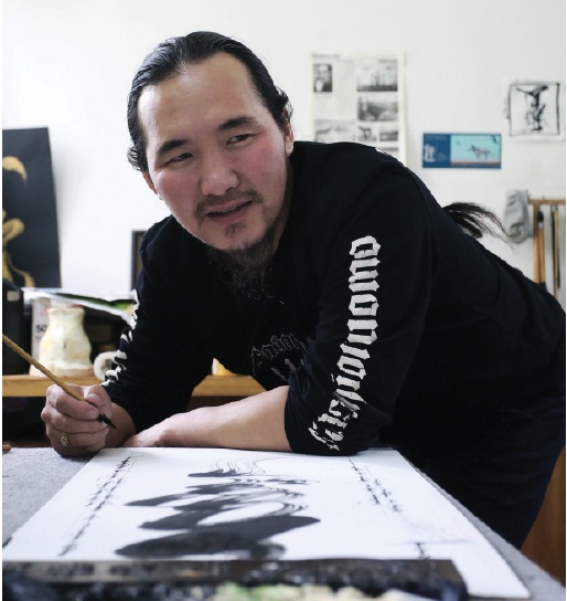 -Каллиграф нь хүнээс маш их мэдрэмж, сэтгэл, гарын ур шаарддаг. “Хөдөлмөрлөсний хүчинд гар мэдрэмжинд захирагдана” гэж Леонардо да Винчийн гоё үг байдаг даа. Каллиграф бол яг л тийм. Бүтээлийг маш олон төрлийн зүйл хийж байж гаргаж ирдэг. Бурханы ном шиг... Мөөрийн цагаан өнгийг гаргахын тулд зөндөө олон цаасан дээр давтаж хийгээд, аятайхан болсныг нь бэлдэц дээрээ нааж татна. Тэгэж байж жижиг бичгээ, улаан орхицоо бичнэ. Маш олон удаа хийнэ. Тэр бүр санаснаар болохгүй. Манайд 90-ээд оноос л каллиграф үүсч байгаа болохоор япончууд шиг айхтар ёс жаягтай биш. Уран бичлэгч хүн хэдэн мянган удаа хийнэ, давтана. Тэгээд чин сэтгэлээсээ төвлөрөөд ганцаараа хийдэг.