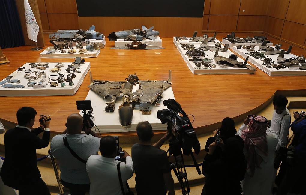 Саудын Арабын батлан хамгаалах яам тус улсын газрын тосны объектууд руу үйлдсэн халдлагын үеэр ашигласан дрон болон пуужингийн сүүлний хэлтэрхийнүүдийг олон нийтэд үзүүлэв.