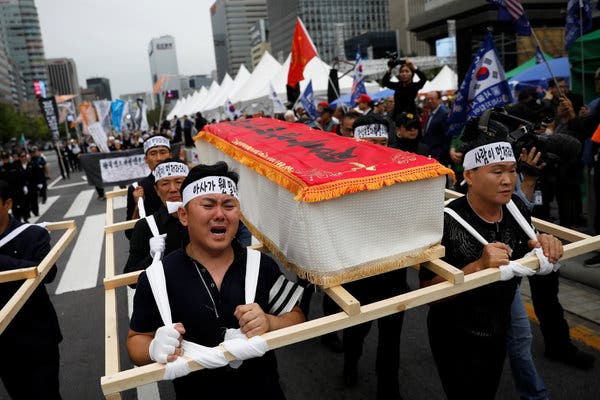 Өнгөрсөн амралтын өдөр олон зуун хүн Сөүлийн гудамжинд гарч, Хойд Солонгосоос илүү сайхан амьдрал хайж, Өмнөд Солонгост дүрвэн ирсэн ч, өлсгөлөнгөөр харангадаж амиа алдсан ээж, хүү хоёрын дурсгалыг хүндэтгэжээ. Цагаачид голдуу жагсагчид хоёр хоосон авс барин, Өмнөд Солонгосын ерөнхийлөгчийн ордон болох Хөх Ордны зүг алхаж, цагдаагийнхны эсэргүүцэлтэй тулжээ.