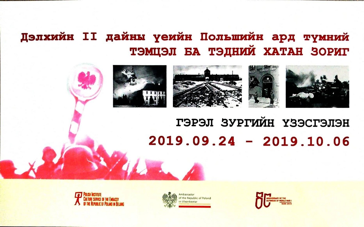 Бүгд Найрамдах Польш Улсаас Монгол Улсад суугаа Элчин сайд Кшиштоф Бойко, Бээжин дэх Польшийн Соёлын төв хамтран "Дэлхийн II дайны үеийн Польшийн ард түмний тэмцэл ба тэдний хатан зориг" сэдэвт гэрэл зургийн үзэсгэлэнг Монголын Үндэсний музейд 2019 оны 9 дүгээр сарын 24-нөөс 10 дугаар сарын 6-ны өдрүүдэд үзүүлэх болно.