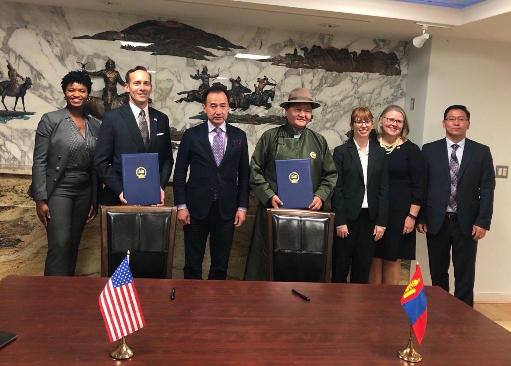 АНУ-д хураагдаад байсан Монгол Улсын өв болох үлэг гүрвэлийн олдворуудыг буцаан авах “Өмч хөрөнгийг харилцан маргаангүй нөхцлөөр хүлээлгэн өгөх тухай” гэрээнд гарын үсэг зурах ёслолд Гадаад харилцааны сайд Д.Цогтбаатар оролцов.