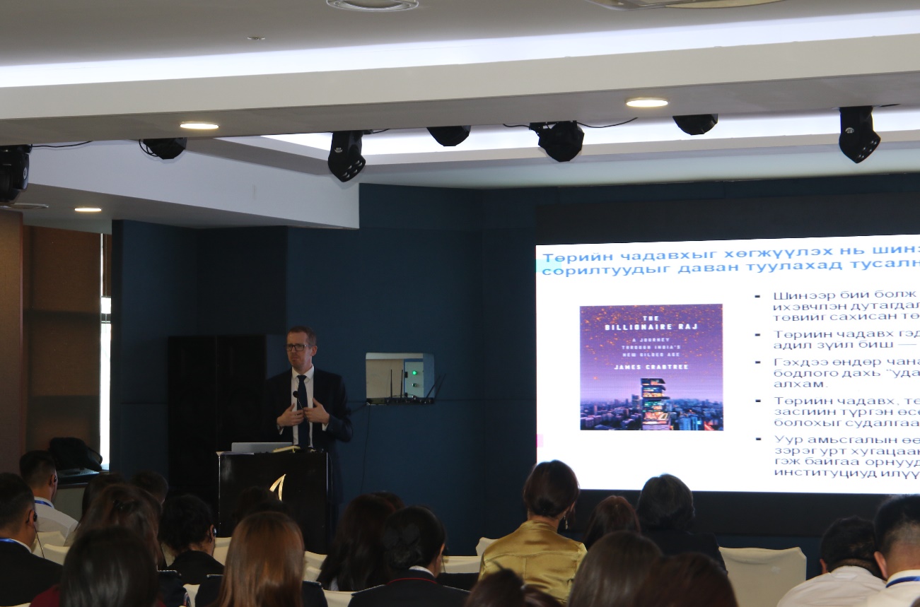 Энэ удаагийн цуврал сургалтуудын зочин багшаар Сингапурын Үндэсний их сургууль, Ли Куан Югийн нэрэмжит Төрийн бодлогын сургуулийн дэд профессор, сэтгүүлч, бодлого судлаач Жэймс Крабтри “Бодлогын коммуникаци хийхэд гардаг бэрхшээл, сорилтууд”, “бодлогыг ойлгуулж,тайлбарлан таниулахын ач холбогдол”, “төрийн албан хаагчид бодлогыг сурталчилан таниулах арга зам” зэрэг үндсэн гурван агуулгын хүрээнд сургалтуудыг зохион явуулсан юм.