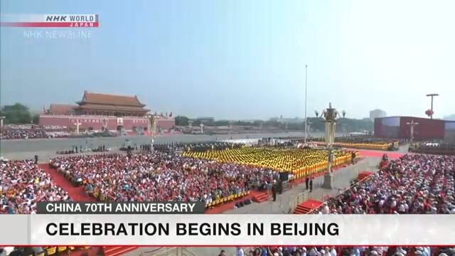 Ойн арга хэмжээ эхэлснийг Ли Көцян зарласны дараа 70 удаагийн хүндэтгэлийн буудлага болж, Хятадын ардын чөлөөлөх армийн хүндэтгэлийн харуул тус улсын тугийг хүндэтгэлтэйгээр төв талбайд байрлуулав. Үүний дараа БНХАУ-ын төрийн сүлд эгшиглэв.