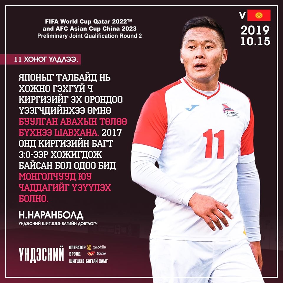 “Н.Наранболд бол биеийн хөгжил сайтай, ёстой мангас гэсэн үг. Түүнээс л сэргэмжлэх хэрэгтэй. Маш холоос ч хүчтэй цохилтоор гоол оруулж чадна. Монголчууд Н.Наранболдоо урд орхиод бүх багаараа хамгаалж, түүнд л дамжуулалт өгөх тактиктай тоглох магадлал өндөр. Айх зүйл бол Н.Наранболдын ганц цохилт. Гоол орохооргүй газраас ч бөмбөг хаалганд оруулдаг довтлогч”
