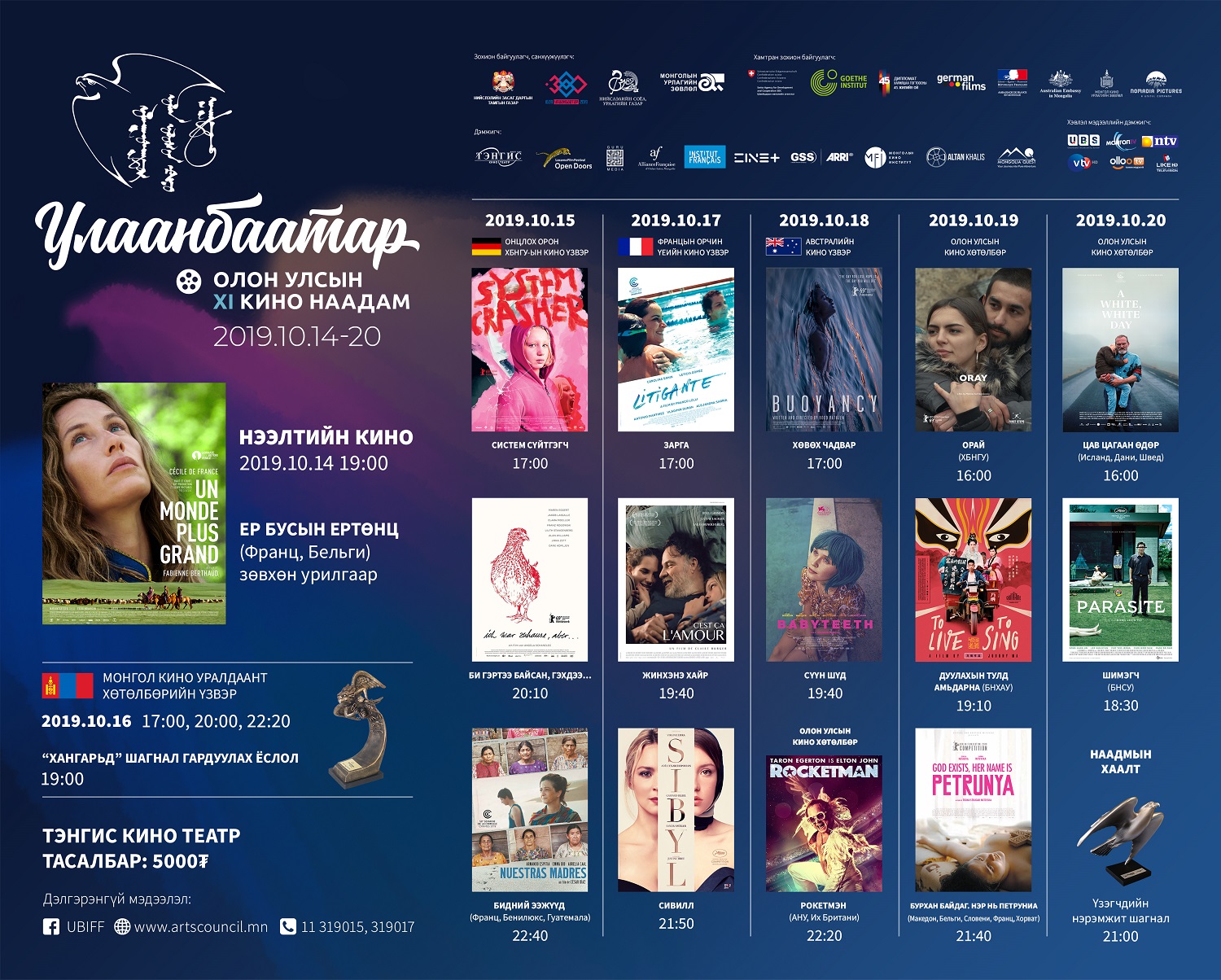 Нийслэл Улаанбаатар хотын 380 жилийн ойн хүрээнд Нийслэлийн засаг даргын тамгын газар, Нийслэлийн соёл урлагийн газар, Монголын урлагийн зөвлөл (МУЗ) нь Монголын кино урлагийн зөвлөл (МОКУЗ), Швейцарын хөгжлийн агентлаг, Бүгд найрамдах Франц улсын элчин сайдын яам, Монгол дахь Гёте институт, Австралийн элчин сайдын яам, Номадиа Пикчерс ХХК-тай хамтран кино урлагийн салбарын олон улсын хамтын ажиллагааг нэмэгдүүлэх, Монголын кино урлагийн салбарыг хөгжүүлэх, дэлхийн нэр хүндтэй наадмуудад шалгарсан кино бүтээлийг Монголын үзэгчдэд хүргэх зорилготой “Улаанбаатар” Олон Улсын Кино Наадам (УБОУКН)-ыг арван нэг дэх жилдээ 2019 оны аравдугаар сарын 14-20-нд Улаанбаатар хотноо зохион байгуулж байна.