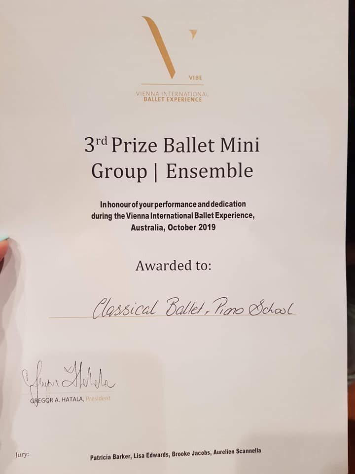Австралийн Перт хотноо аравдугаар сарын 05-ны өдөр “Vibe” олон улсын баллетын тэмцээн болж өнгөрлөө. Уг тэмцээнд Монгол Улсаас “Classic ballet & Piano school”-ийн бяцхан бүжигчид оролцон гуравдугаар байрын шагнал хүртжээ.