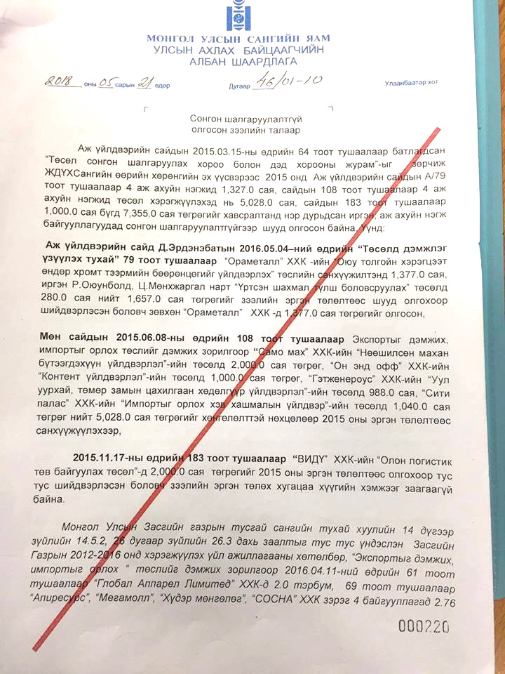 “Ганрекс” ХХК 1.5 тэрбум төгрөгөөр дотоодоос худалдан авалт хийж, гэрээний үүргээ биелүүлээгүй.