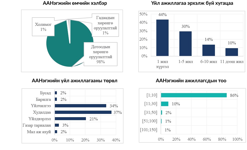 -Үйлчилгээний салбарын тухайд ажиллагчдын тоо нь 49-өөс дээшгүй бөгөөд 1 тэрбум төгрөг хүртэлх жилийн борлуулалтын орлого бүхий үйлчилгээ эрхэлдэг аж ахуйн нэгж, иргэн; -Худалдаа, үйлчилгээ, жижиг үйлдвэрийн салбарын тухайд ажиллагчдын тоо нь 19-өөс дээшгүй бөгөөд үйлдвэрлэл эрхэлдэг, эсхүл контракт, хөдөлмөрийн гэрээгээр ажиллагчдын тоо нь 9-өөс дээшгүй бөгөөд худалдаа, үйлчилгээ эрхэлдэг, 250 сая төгрөг хүртэлх жилийн борлуулалтын орлого бүхий жижиг үйлдвэр эрхлэгч аж ахуйн нэгж, иргэн байна гэж заасан байдаг.