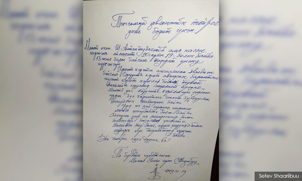 Одоогоос 13 жилийн өмнө Малайз улсад бусдын гарт зэрлэгээр амиа алдсан Ш.Алтантуяагийн аав С.Шаарийбуу тус улсын хууль, хяналтын байгууллагад хандаж захидал бичжээ.