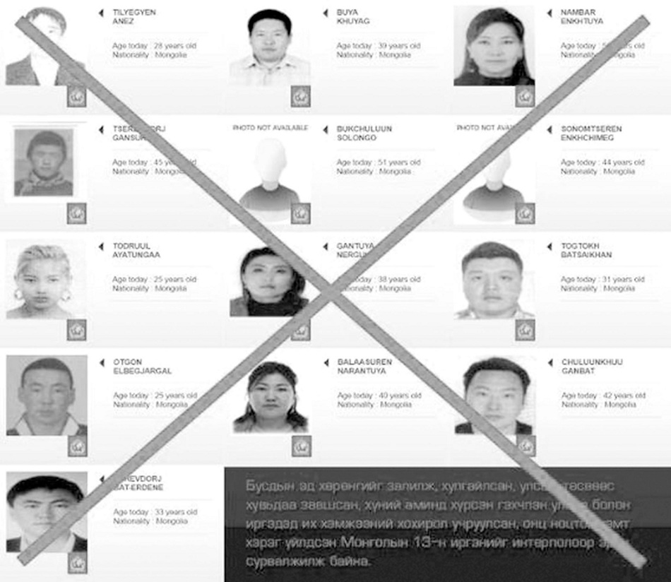 Өнөөдрийн байдлаар Олон улсын эрэн сурвалжлах алба Интерполын шугамаар Монгол Улсын хоёр иргэнийг хайж байгаа гэх мэдээлэл бий. Харин өнгөрсөн онд Монгол Улсын 14 иргэнийг эрэн хайж байсан бол 12 иргэний нэрийг хасаж, хоёр иргэний мэдээллийг байршуулж үлдээжээ. Зарим эх сурвалжийн мэдээлж байгаагаар интерполын шугамаар эрэн сурвалжлагдаж байсан монгол иргэдийн тоо нийт 69 болсон гэх ба эдгээр иргэдийн талаарх мэдээллийг авах хүсэлтийг манай улсаас гаргаад байгаа аж.