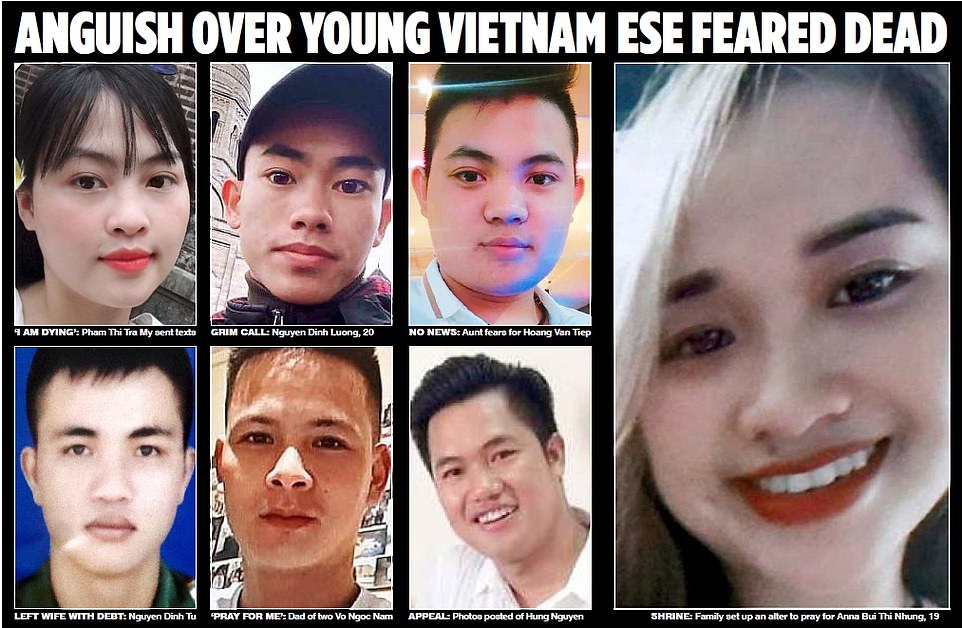 Данг Тхи Ха хүүгээ амьд гэж итгээсээр. Хүү нь Британи руу явахаасаа өмнө гэрийнхэнтэйгээ утсаар ярьж, азтай байхыг ерөөн, хүж асаахыг хүсжээ. Түүнээс хойш хүүгээс нь сураг гараагүй байна. 28 настай Во Нгок Нам өнгөрсөн онд гэрээний дагуу Румын улсад ажиллахаар явжээ. Тэнд гэрэнд заасан хэмжээнээс хоёр дахин бага цалин өгсөн учир, 8500 мянган ам.доллар төлж, Герман руу гарсан байна. Барилга дээр ажиллаж байсан Нам Их Британид илүү өндөр цалинтай ажил олохоор, “найдвартай сувагт” хандсан гэж гэрийнхэндээ хэлж байжээ.