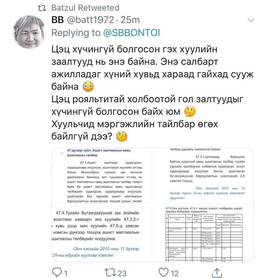Монгол Улсын иргэд байгалийн баялгаасаа шууд ашиг хүртэх үндсэн аргыг роялти гэх нь бий. Харин Үндсэн хуулийн Цэц роялтиг хоёр дахин өндөр болгосон УИХ-ын шийдвэрийг цуцлав.