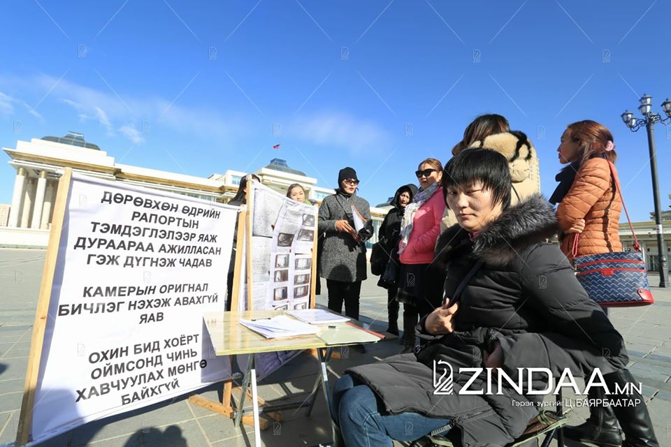 Б.Болороо бүсгүйн нөхөр ажил үүргээ гүйцэтгэж яваад харамсалтайгаар амиа алдсан. Өнгөрсөн зургаадугаар сард болсон энэ хэргийг Сонгинохайрхан дүүргийн Цагдаагийн хэлтэст шалгаж байгаа бөгөөд түүний нөхрийг ажил үүргээ гүйцэтгэж байхдаа согтуу байсан гэх шүүх эмнэлгийн дүгнэлт гарсан билээ. Тэрбээр шүүх эмнэлгийн шинжилгээний хариуг хүлээн зөвшөөрөхгүй, дахин шинжилгээ хийж, хэргийн харьяаллыг өөрчилж өгөхийг шаардан энэ сарын 1-нээс эхлэн Сүхбаатарын талбайд 12:00-16:00 хооронд суулт зарлаад байгаа юм. Түүний энэ тэмцэл хэрхэн өрнөж байгааг сурвалжлахаар бид Сүхбаатарын талбайг зорилоо.
