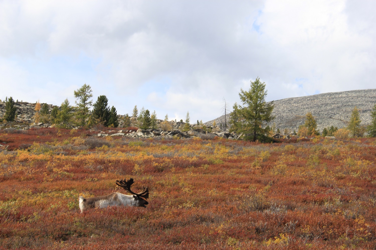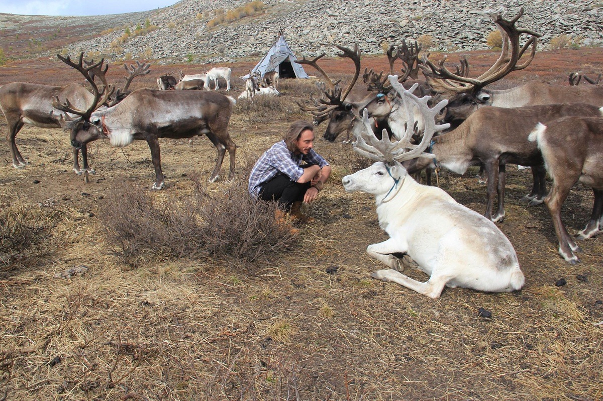“Эхний таван минут дөхөж очихоос ч айна. Маш том эвэртэй. Хэн нэгнийг мөргөх гэж л ийм эвэртэй болсон байх. Денис “Цаа буга илээч” гэж дуудахыг сонсоод очлоо. Харин цаа өөрөө хүрч ирээд илүүлж байна. Илж, маажихад дуртай амьтан юм. Нохой, үхрийн хооронд юм шиг инээдтэй хоншоортой. Нэгийг нь тэвэрч байхад нөгөөх нь хүрч ирээд намайг ч ил гээд мөргөнө. Дуугарч байгаа нь хөөрхөн. Гахайн торой дунд хонож байгаа мэт санагдана. Майханд унтаж байхад хэн нэг нь хажуугаас нудраад л” Катерина