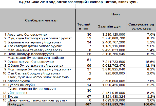 Хүнс, хөдөө аж ахуй, хөнгөн үйлдвэрийн яамнаас Жижиг, дунд үйлдвэрийг хөгжүүлэх санд өнгөрсөн тавдугаар сарын 27-ноос эхлэн 14 хоногийн хугацаанд төсөл хүлээн авахаар орон даяар зарласан билээ. Жижиг дунд үйлдвэрийг хөгжүүлэх сангийн төслийн сонгон шалгаруулалтад хүсэлт ирүүлсэн иргэдийн 17 хувь хамрагдаж, 47 тэрбум төгрөгийн дөрвөн зээлийн багцын хүрээнд нийт 467 иргэн, аж ахуйн нэгжийн төсөл урт хугацаатай, хөнгөлөлттэй зээлд хамрагдахаар болсон юм.