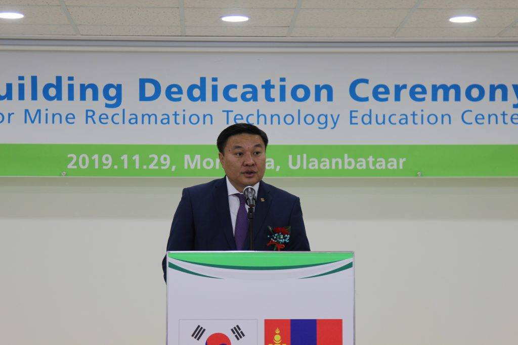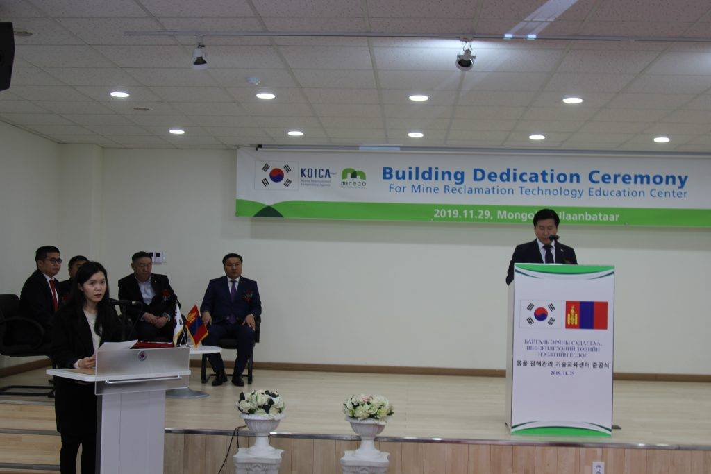 Монгол Улс, БНСУ-ын Засгийн газар хооронд 2016 онд Монгол Улсад уул уурхайгаас үүдэлтэй сөрөг нөлөөллийг бууруулах, байгаль орчинд сөрөг нөлөөлөл багатай уул уурхайг хөгжүүлэх, нөхөн сэргээлтийн чиглэлээр сургалт судалгааны төв байгуулах замаар нөхөн сэргээлт хийх чадавхийг сайжруулах зорилготой хэлэлцээр байгуулсан. Энэ хүрээнд БНСУ-ын Олон улсын хамтын ажиллагааны агентлагын 5.8 сая ам.долларын буцалтгүй тусламжаар 2125 м2 талбайтай лекц, лаборатори, мэдээллийн танхим бүхий судалгаа, шинжилгээний төв байгуулж, Монгол Улсын Засгийн газарт хүлээлгэж өглөө.