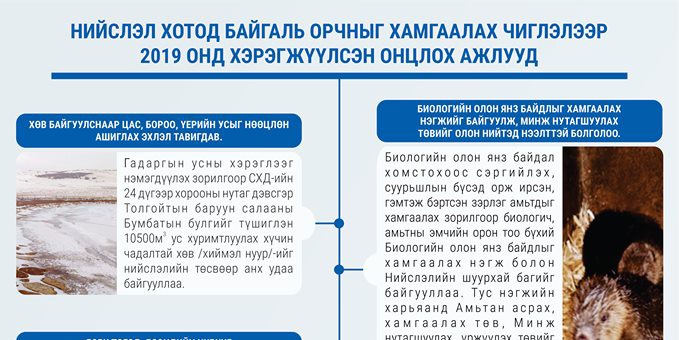 Нийслэлийн нутаг дэвсгэр дэх Туул, Элстэй, Дээндий, Хуандай, Гачуурт, Улиастай, Хөл, Сэлбэ, Толгойт, Түргэн, Хэрлэн, Байдлаг, Нарийн, Хуцаа, Бага гүн, Хүйн голууд, Шургуутын бүрд нуур, Өндөр хааны булгийн усны сан бүхий газарт хориглосон үйл ажиллагааны мэдээлэл анхааруулга бүхий 600 ширхэг мэдээлэх тэмдэг суурилууллаа. Хамгаалалтын бүсийг тэмдэгжүүлснээр тухайн бүсэд хуулиар хориглосон үйл ажиллагаа явагдахгүй байх, иргэн, аж ахуйн нэгж санамсар болгоомжгүйгээр хууль зөрчихгүй байх нөхцөл бүрдэж байна.