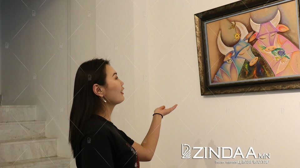 -Энэ үзэсгэлэн миний багштайгаа хамтарч гаргаж буй анхны үзэсгэлэн. “Урлах эрдэм” дээд сургуульд арьсан урлагийн “А” үсэг анхлан заасан Ч.Алтанчимэг багшийн маань дотоод ертөнц гэгээн санагддаг. Миний хувьд ертөнц гэдэг хүний бодлын хязгаараас давсан агуу том зүйл юм. Ертөнцийг танихын хэрээр хүн хумхын тоос мэт өчүүхэн жижиг гэдгээ мэдэрнэ. Ургамал амьтан, хүн бол ертөнцийн салшгүй нэг хэсэг бөгөөд тэдгээр нь гадаад төрхөөрөө өөр юм шиг хэр нь дотоод мөн чанар нь ижил байдаг. Тиймээс ертөнц гэдэг маш олон зүйлийн нэгдэл юм. Хүний амьдрал маш удаан үргэлжилдэг мэт боловч эцсийн цэг дээр очоод эргээд харахад маш богинохон, зүүд зэргэлээ шиг байдаг учраас бие биеэ хайрлаж, нэгэн цул байя гэсэн санааг бүтээлдээ илэрхийлэхийг зорьсон. Өнөөдөр Монгол Улсад эв нэгдэл, нэг зорилго чухал хэрэгтэй байна. Энэ санаа ч цухалзаж буй. Үзэсгэлэн маань энэ сарын 28 хүртэл нээлттэй.