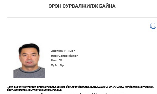 Цагдаагийн байгууллагаас Монгол Улсын Ерөнхий сайд асан Ч.Сайханбилэгийг эрэн сурвалжилж, мэдээлэл худалдаж авахаа зарлаж, өөрийн цахим хуудастаа зургийг нь байршуулжээ.