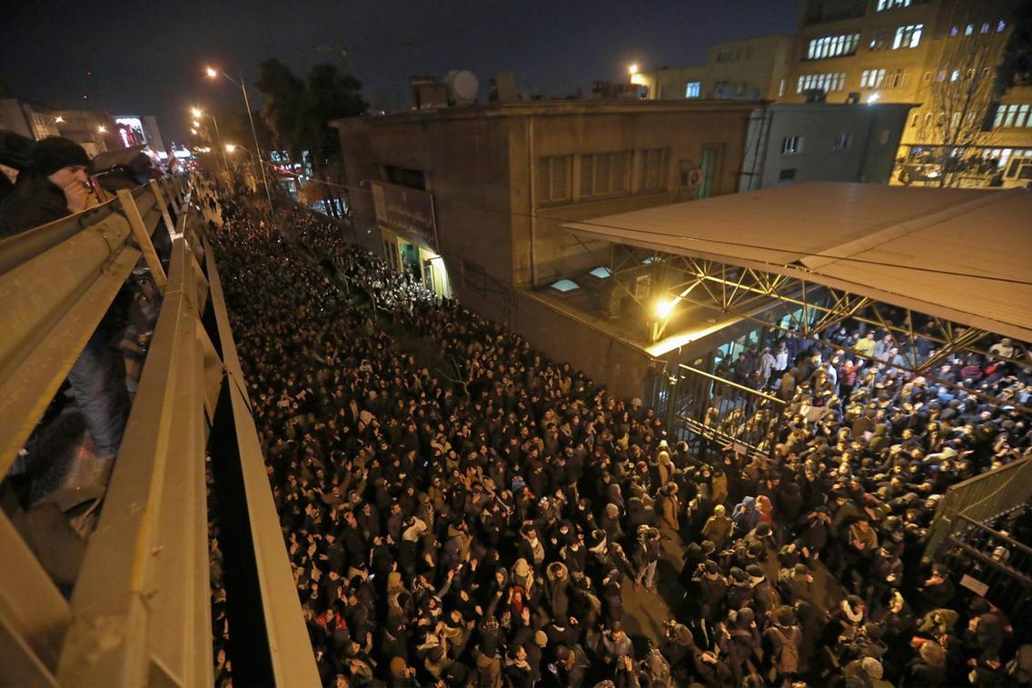 Жагсагчид Тегеран болон бусад хотуудад эсэргүүцлийн цуглаан зохион байгуулж, онгоцны осолд холбоотой албан тушаалтнуудыг огцруулахыг шаардсан байна. Тегераны төв Азади талбай болон бусад дүүргүүдэд эмх замбараагүй байдалтай тэмцэх анги нэгтгэлүүдийг дайчлаад байгаа бөгөөд жагсагчдын эсрэг нулимс асгаруулах хий хэрэглэсэн тухай зарим хэвлэлүүд мэдээлжээ.