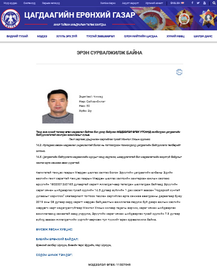 Яллагдагчаар татсан хүнээ эрэн сурвалжлана гэдэг сонин сонсогдож байна,бас Сайханбилэгийн талаар үнэн зөв мэдээлэл өгсөн хүнийг шагнана гэжээ,ямар мэдээлэл вэ?хаана байгааг нь хэлэх юм уу?эхнэр хүүхэд эх эцэг нутаг орных нь тухай мэдээ юу?ойлгомжгүй зар байна
