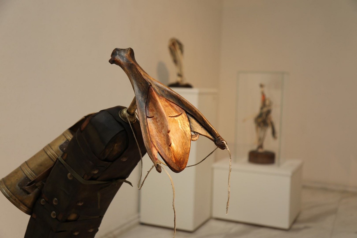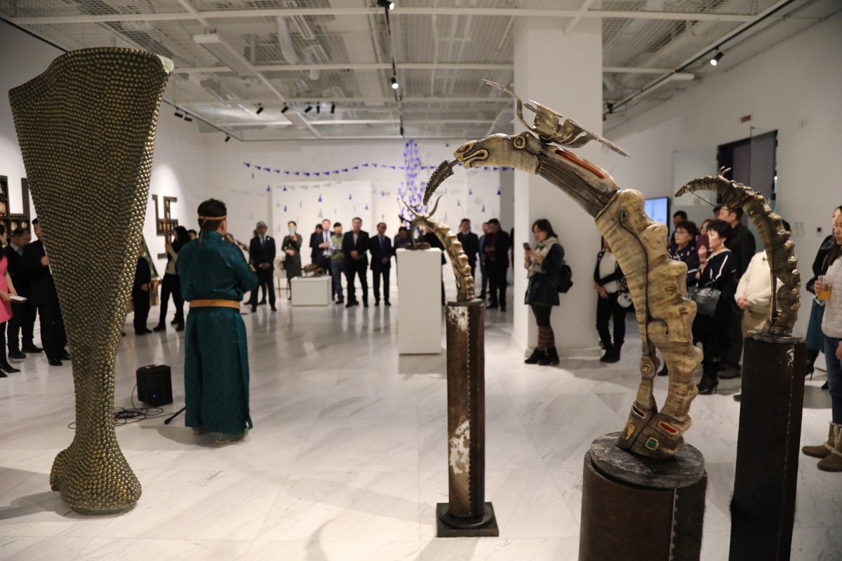 Уран бүтээлч Т.Баттогтох далны сийлбэрүүдээс гадна далны ясны хэлбэртэй хүрэл баримал бүтээсэн нь мөн үзэсгэлэнд тавигджээ. Эртний олдворыг ашиглан баатрын дүрийг бүтээхдээ хүрэл цутгамал далны ясыг малгайн орой дээрх чимэг болгон босгосон нь шинэлэг хийгээд тус үзэсгэлэнгийн бас нэгэн чимэг, тод өнгө нь болж буй юм.
