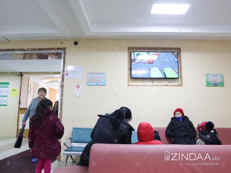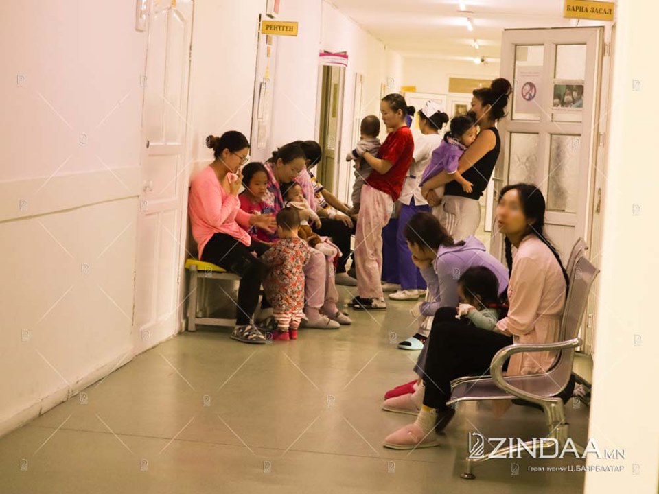 Есөн настай болов уу гэмээр охиных нь уруул хатаж омголтоод илт ядарч халуурч байгаа бололтой харагдана. Энэ мэтээр үзлэгийн өрөөний гадна балчир хүүхдээ тэвэрсэн ээж, ахлах ангийн охиноо дагуулсан аав үзүүлэх гэж яарсан хэдий ч дараалал хүлээн сууцгаана. Хүүхдүүдийг үзэж байгаа эмч нь шөнийн ээлжинд ажилласан боловч ачаалал гэнэт нэмэгдсэн учраас үргэлжлүүлэн ажиллаж байгаа нь энэ.