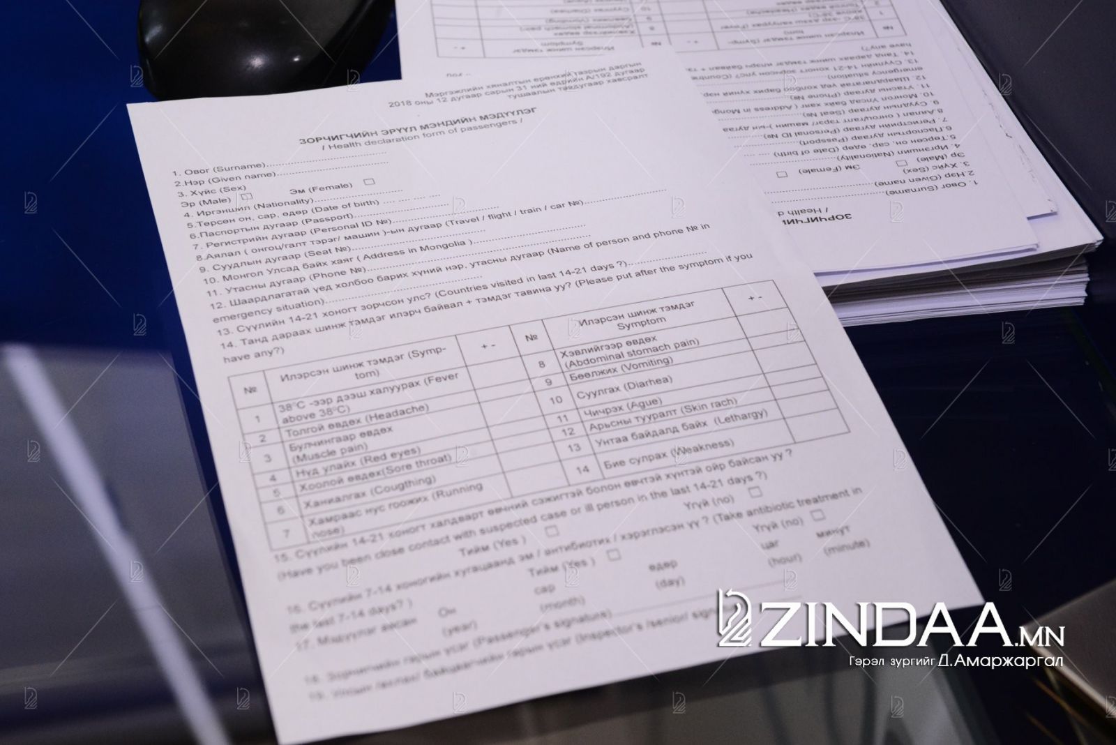 Хөл хөдөлгөөн намжсаны дараа бид “Буянт-Ухаа” боомт дахь Хилийн мэргэжлийн хяналтын албаны Эрүүл ахуй, халдвар, хамгааллын хяналтын улсын ахлагч байцаагч Т.Төмөрбаатартай уулзлаа. Тэрбээр “МХЕГ-аас халдварт өвчин гарснаас хойш Хилийн мэргэжлийн хяналтад чиглэл өгсөн. Дэлхийн эрүүл мэндийн байгууллагаас БНХАУ-д тархах эрсдэл өндөр түвшинд байна гэж гарсан учраас "Буянт-Ухаа" боомт дээрх Хилийн мэргэжлийн хяналтын албыг чангатгаж, БНХАУ-аас ирж байгаа нислэгүүдээс зорчигчийн эрүүл мэндийн хуудас бөглүүлж байна. Бүх зорчигчийн халууныг хэмжин сэжигтэй тохиолдол гарвал Халдварт өвчин судлалын үндэсний төвд шилжүүлж байна. Шинэ төрлийн коронавирус гарснаас хойш хугацаанд БНХАУ-ын Бээжин, Хонгконгоос онгоцоор ирсэн халуурсан, ханиалгасан, амьсгалын замын халдварын сэжигтэй зургаан хүнийг ХӨСҮТ-д түр тусгаарлан онош тодруулах шинжилгээ хийж, шинэ төрлийн коронавирусын халдвар биш болох нь тогтоогдсон. Шинэ төрлийн коронавирусийн голомт болох БНХАУ-ын Хубэй мужийн Ухань хотоос 100 гаруй Монгол иргэн ирсэн. Гэхдээ сэжигтэй тохиолдол бүртгэгдээгүй” гэлээ. Нэг ээлжид Мэргэжлийн хяналтын ерөнхий газрын 4-5 байцаагч ажиллаж байгаа аж. Хоёр байцаагч онгоцонд хяналт тавьж, хоёр байцаагч термокамер хянан ажиглалт хийж байлаа. Онгоцонд ажиллаж байгаа байцаагчид эрүүл мэндийн хуудас дээрх халуурах, ханиалгах гэсэн шинж тэмдгийг зөвлөсөн зорчигчийн халууныг үзэн тусгаарлах арга хэмжээ авна. Харин термокамер ажиглаж байгаа байцаагчид камерт 38 хэмээс дээш халуурсан иргэд ажиглагдвал тусгаарлан Халдварт өвчин судлалын үндэсний төвд шилжүүлэх арга хэмжээ авна. Мөн Бээжин болон Хонконгоос ирж байгаа зорчигчдыг халдварын голомт болох Ухань хотоос дамжин суусан уу гэдгийг “Ай пи эс” буюу зорчигчийн мэдээллийн системийн тусламжтайгаар харан хэрвээ байвал тухайн зорчигчдод нарийвчлан тандалт явуулдаг аж.