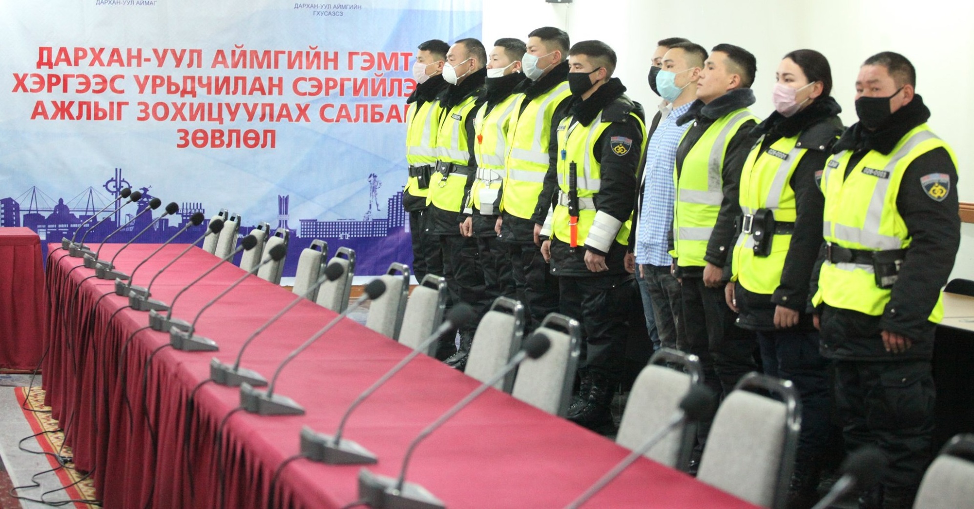 Дархан-Уул аймгийн хэмжээнд гэмт хэрэг, зөрчлөөс урьдчилан сэргийлэх, нийтийн хэв журам хамгаалах үүрэг бүхий Олон нийтийн цагдаа нь Цагдаагийн албаны тухай хууль, Олон нийтийн цагдаагийн дүрмийн хүрээнд 2014 оноос хойш үйл ажиллагаа явуулж байна. Олон нийтийн 21 цагдаа ажиллахаас өнөөдрийн байдлаар 12 иргэн хөдөлмөрийн гэрээ байгуулан ажиллаж байгаа юм.