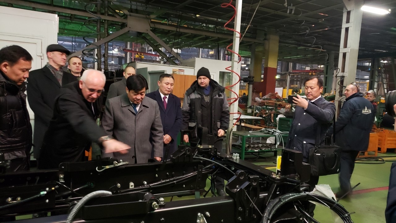 Дараагийн очсон нэг чухал газар бол 76 дахь жилийн түүхээ бичиж буй “МАЗ”-ын үйлдвэр. Монголчууд “МАЗ”-ыг эртнээс мэднэ. Соцсистем задрахын өмнөхөн, 1989 онд энэ үйлдвэр 1 сая дахь машинаа үйлдвэрлэн гаргасан тухай мэдээлж байсныг тус үйлдвэрийн хаалгаар орохдоо эргэн дурслаа. Тэр цагаас хойш олон зүйл өөрчлөгджээ. Тэр үед том оврын ачааны машин, тусгай зориулалтын техник дагнан үйлдвэрлэдэг байсан бол одоо үйлдвэрлэлээ өргөжүүлж нийтийн тээврийн автобус, троллейбус хийж байна. Бидний мэдэх “МАЗ” машин маань евро-6 стандартын Mercedes-Benz мотортой, дизель хөдөлгүүртэй, евро бүхээгтэй болсон байна.