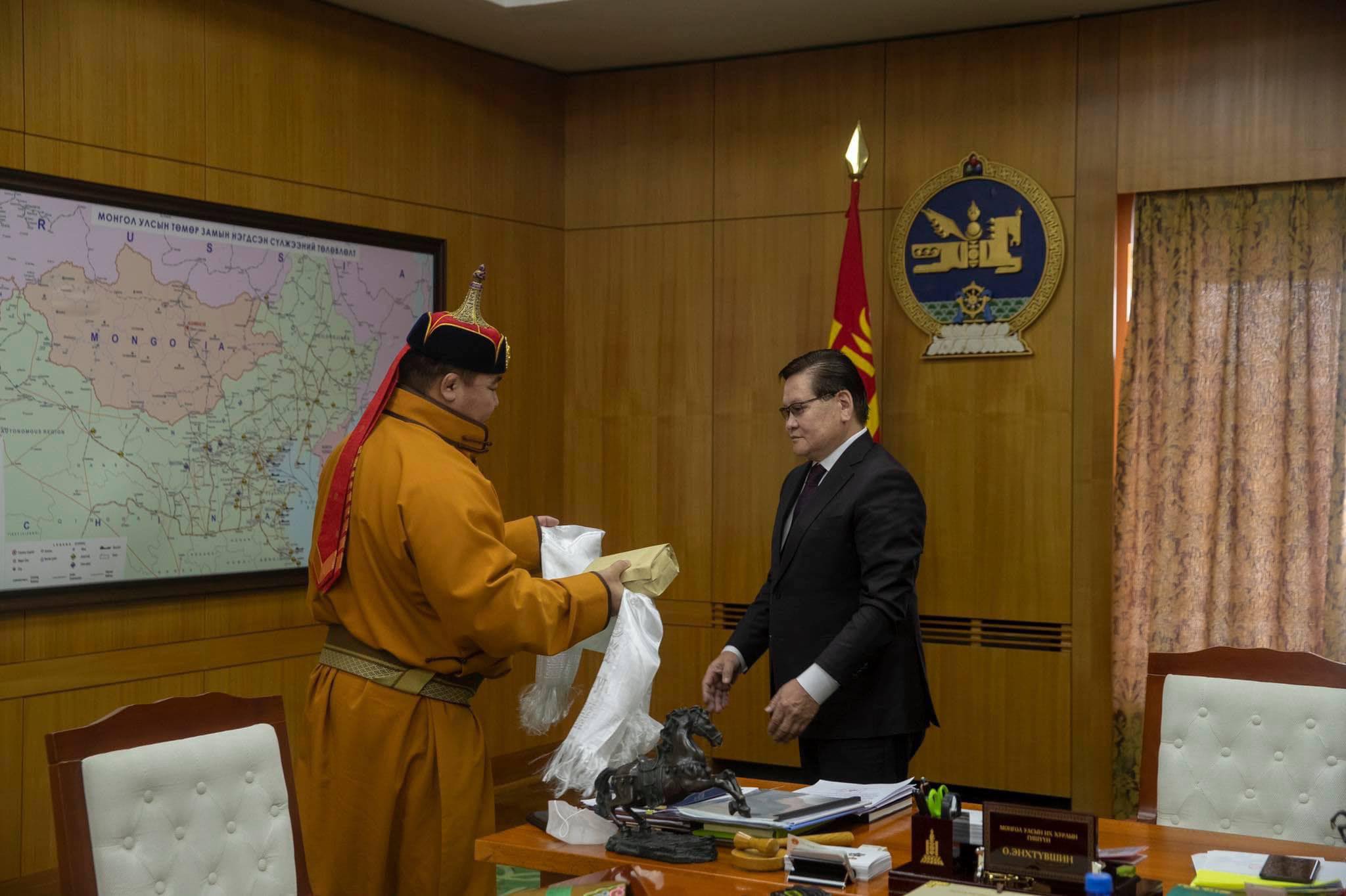 Монгол Улсын Үндэсний бөхийн 20 дахь аварга Сүхбаатарын Мөнхбат Улсын онцгой комисст 20 сая төгрөгийн хандив өргөлөө.