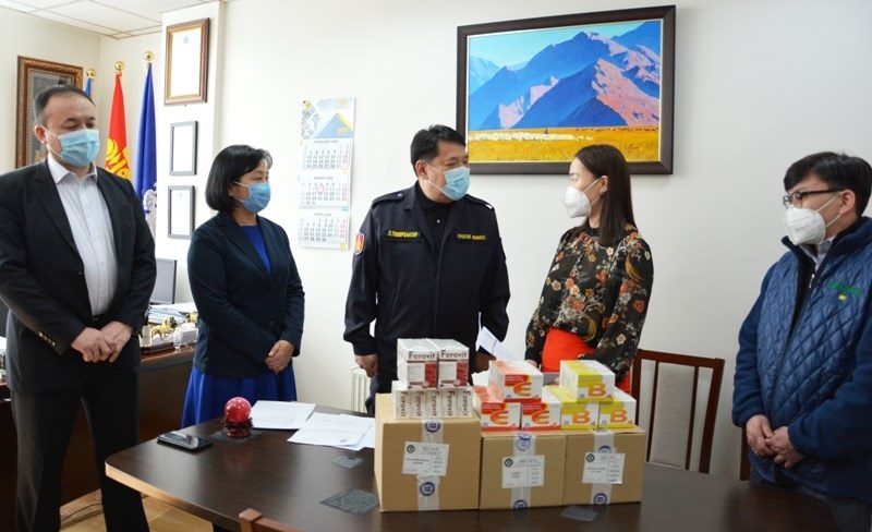 Мөн “Ач үр” ХХК-иас нийт 25,1 сая төгрөгийн өртөг бүхий 1895 ширхэг Антиосикапс №30, Антиосикапс+төмөр №30, витамин Е 200 мг болон 400 мг, Кальций Д3 витаминыг хандивласан юм.