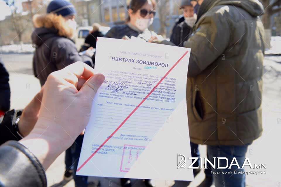 Дараалалд зогсогсод дунд Замын-Үүд рүү ажлын шугамаар явах гэсэн, гэртээ эхнэр хүүхдэдээ очих гэж байгаа, Дундговь аймгаас эмнэлэгт үзүүлэх гэж хотод ирээд хөл хорионд орсон зэрэг янз бүрийн нөхцөл байдалтай, хүндэтгэн үзэх зайлшгүй шалтгаантай хүмүүс ч байлаа. Нэвтрэх зөвшөөрөл авахыг хүссэн иргэд учир шалтгаанаа тодорхой бичсэн өргөдөл, автомашины гэрчилгээ болон иргэний үнэмлэхний хуулбар зэргийг шалгуулахаар бэлджээ. Хөл хорио тогтоосон, шинэкоронавирусний халдвар Франц улсын иргэнээс илэрсэн, өндөржүүлсэн бэлэн байдалд анхаарал болгоомжтой байж, эрүүл мэндийн байгууллагын зөвлөмжийг дагах ёстой зэргийг иргэд ухамсарлаж байгаа аж. Гэсэн хэдий ч зайлшгүй шаардлагатай учраас орон нутгийг зорих гэж буйгаа учирласан юм. НОБГ-аас тухайн иргэний регистрийн дугаар, нэвтрэх автомашины дугаар, хамт зорчих хүмүүсийн регистрийн дугаар, зорчигчийн нэр зэргийг тэмдэглэсэн нэвтрэх зөвшөөрлийг олгож байгаа аж. Энэ үеэр цагдаагийн албан хаагчид дэг журмыг сахиулахаар хяналт тавин ажиллаж байсныг онцолъё. Нэвтрэх зөвшөөрлийг иргэн болон аж ахуйн нэгж гэсэн хоёр хэлбэрээр олгож байгаа гэнэ. Цааш бид албаны эх сурвалжаас мэдээлэл авахаар НОБГ-ын төв хаалган дээр очиход “Ертөнцийн зүгээр баруун талын хаалгаар очин зөвшөөрөл авна уу. Маск зүүгээгүй иргэдэд үйлчлэхгүй” гэсэн бичиг хаджээ.