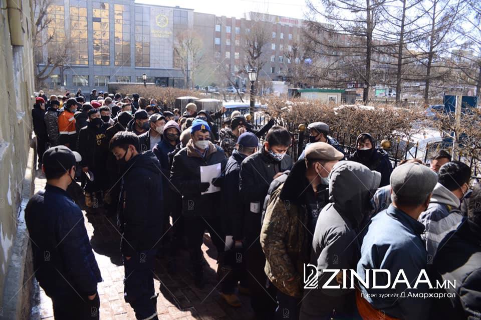 Харин байдал арай эсрэгээр өрнөж байсан үе болох 13:00 цагийн алдад нийслэлийн Онцгой байдлын газрыг зорилоо. Тус газрын баруун жигүүрт байрлах хаалганы гаднах талбай хотоос гарч орон нутаг руу нэвтрэх зөвшөөрөл авахыг хүссэн иргэдийн хөлд дарагджээ. Дараалалд зогссон 50 орчим насны иргэнээс учир байдлыг нь тодруулахад “Би өөрөө хотын хүн. Хүүхэд маань Төв аймгийн Баяндэлгэр сумаас нохойд хазуулж гүнзгий шархтай, яаралтай байдлаар хотод ирсэн. Сумын эмнэлэгт нарийн тусламж үйлчилгээ үзүүлж чадаагүй, анхан шатны тусламж үзүүлж марлаар хөвөн тавьж боосон. Бас суманд вакцин байхгүй гэсэн. Оёдол тавиагүй. Сая хүүхэд өөрөө ирж чадахгүй байсан учраас ах нь оочерлоод зогсож байна. Энд цагийн өмнө ирж дугаарласан” гэлээ.