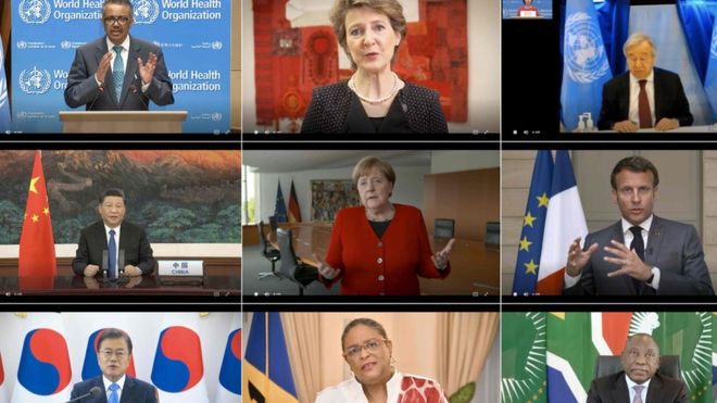 Германы канцлер Ангела Меркель чуулганы оролцогчдыг эхний ээлжид цар тахлыг эрт сэрэмжлүүлэх үр дүнтэй тогтолцоог бий болгохын тулд бүх хүчээ дайчлахыг уриалав. ДЭМБ бол дэлхийн хэмжээний хууль ёсны байгууллага бөгөөд бүх жим энэ байгууллага руу хөтөлдөг. Тиймээс ДЭМБ-ын ажлын явцыг хэрхэн сайжруулах тухай байнга бодож боловсруулж байх шаардлагатай. Тухайлбал, санхүүжилтийн тогтвортой тогтолцоог хангах учиртай гэж Меркель мэдэгджээ. КОВИД-19-тэй тэмцэхэд бидэнд хүчтэй ДЭМБ хэрэгтэй. ДЭМБ бол бид, гишүүн улс орнууд юм гэж Францын Ерөнхийлөгч Эммануэль Макрон Меркелийг санааг дэмжив. Түүний хэлснээр, вакцин гаргах нь бүх нийтийн үйл хэрэг бөгөөд бүх улс оронд тэгш хүртээмжтэй байх ёстой. Өнгөрсөн оны арванхоёрдугаар сард КОВИД-19 халдвар анх бүртгэгдсэнээс хойш дэлхийн 213 орныг хамарч, 4894582 хүн халдвар авснаас 320192 хүн нас барж, 1909433 өвчтөн эдгэрээд байна.