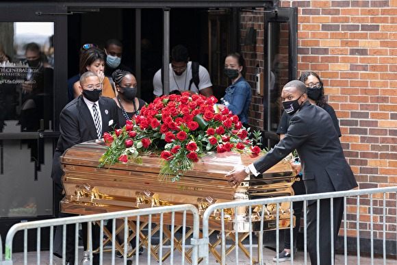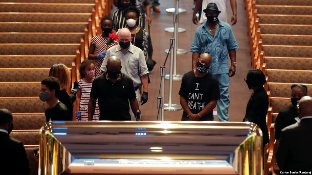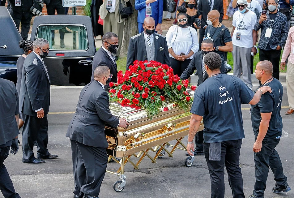Африк гаралтай америк эр Жорж Флойдыг Хьюстон дахь оршуулгын газарт ээжийнх нь нойрсож буй газрын ойролцоо оршуулжээ. Түүнтэй салах ёс гүйцэтгэхээр олон зуун хүн цугларсан байна. Ёслол камергүйгээр болсон бөгөөд оролцогчид "Би амьсгалж чадахгүй байна", "Өвдгөө хүзүүн дээрээс минь ав" зэргээр хашгирч байгаад төгсгөлд нь "Бид амьсгалж байна", "Бид амьдарч байна" зэрэг шинэ уриагаа хэлжээ.