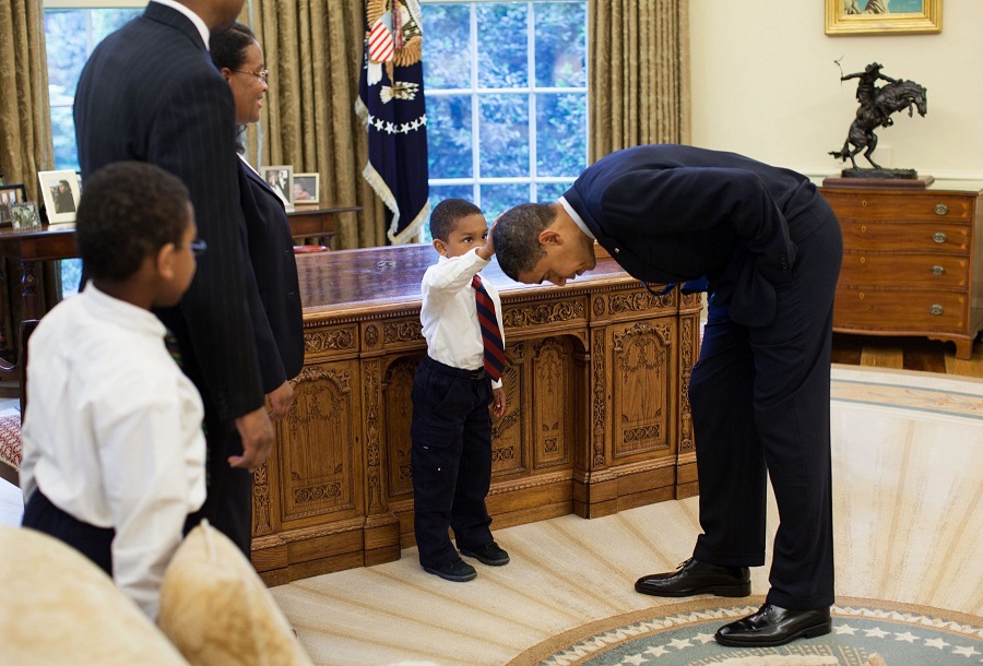АНУ-ын Ерөнхийлөгч асан Барак Обамагийн хамгийн сэтгэл хөдөлгөм зураг бол энэ юм. АНУ-ын Цагаан ордны ажлын албаны гэрэл зурагчин Пет Соуза энэ агшныг буулгажээ. Жейкоб нэртэй энэ хүүг анх харах Ерөнхийлөгч Барак Обама “Залуу найз минь би чамтай л адил. Хоёулаа адилхан үстэй юм. Чи хүрч үзэх үү” гэж асуужээ. Харин хүү ичингүйрэн толгой дохисон байна.