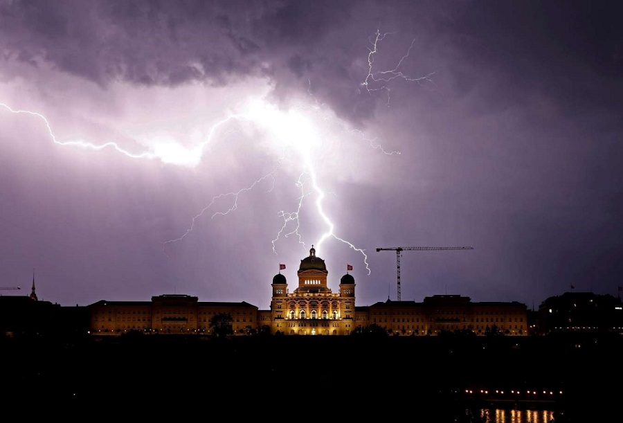 Швейцарын нийслэл Берн хотод байрлах Швейцарийн холбооны ордны дээр цахим буй аянга. Үүнийг Ройтерс агентлагийн гэрэл зурагчин Стефан Вермут буулгасан байна.