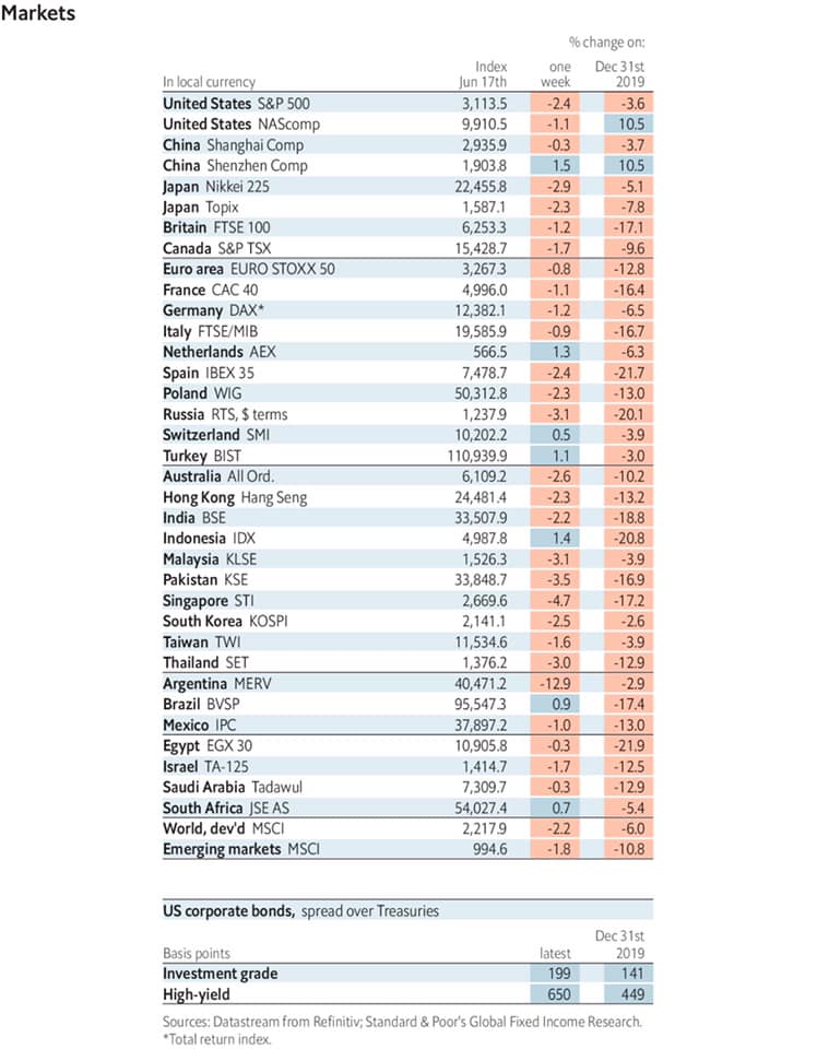 2020 оны эхэнтэй харьцуулахад дэлхийн хөрөнгийн захууд бүгд унажээ. Бусад захууд (Европ, Ази, Латин Америк)-тай харьцуулахад АНУ болон Хятадын хөрөнгийн захын уналт харьцангуй сул байна.